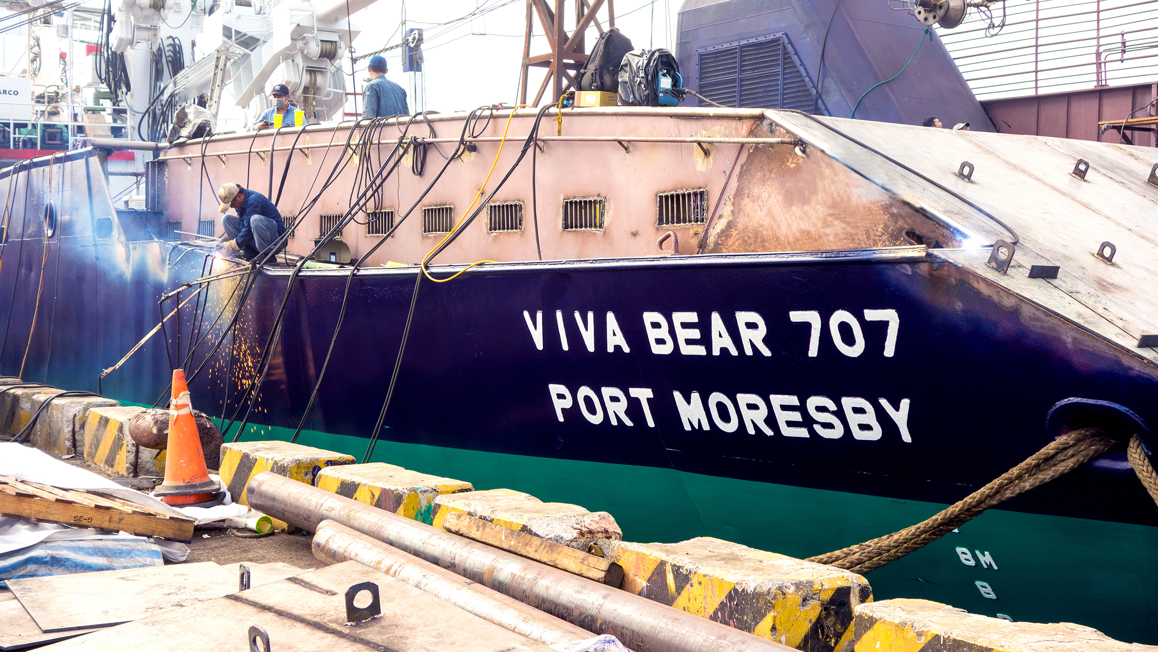 去年三月,「Viva Bear 707」開始進行主桅與吊桿等關鍵系統及設備翻新工程,每一道焊接、每一次校正,都是為了讓船體結構更穩固、作業系統更順暢,為遠洋長航做好萬全準備。隨後,船舶在台進行修改工程,優化了作業動線與安全設計,不僅提升整體航行與作業安全性,也更加符合公司對船舶品質與永續經營的期待。
